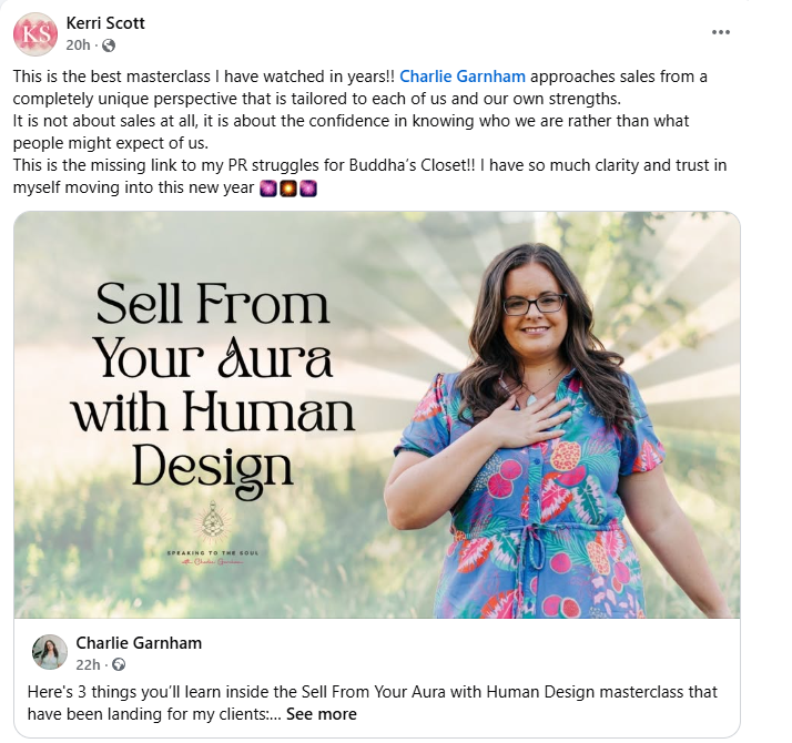 Your aura is always communicating, even before you say a word. This masterclass shows you how to tune into your natural energy, so selling feels effortless, magnetic, and completely aligned with your truth.